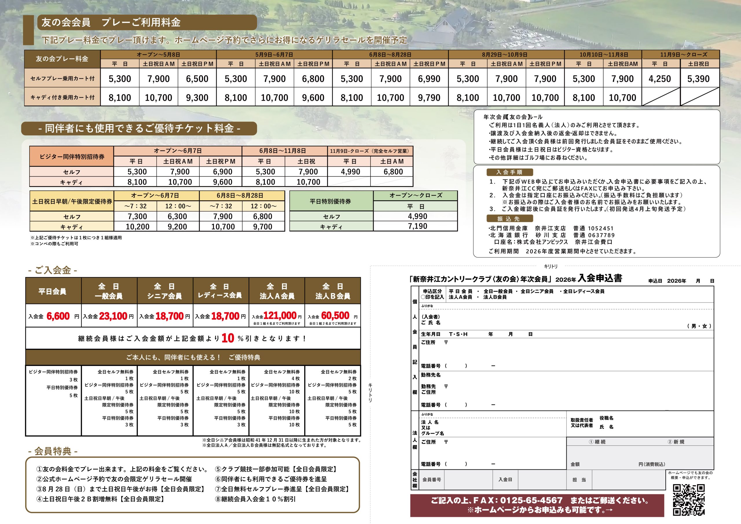 新奈井江CC宛にご郵送もしくはFAXにてお申込み下さい。